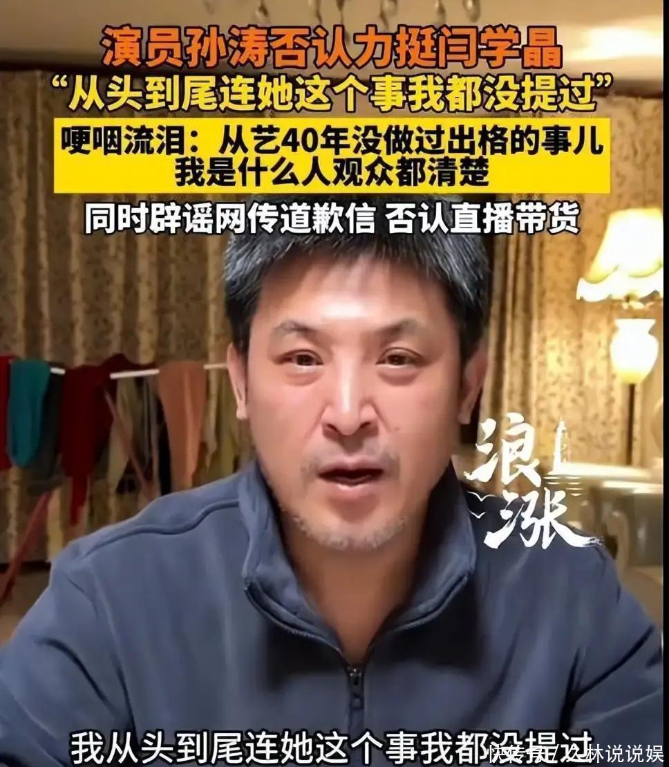 1月23号,孙涛借助一段23分钟的视频声明,把网上流传的那些不实消息做澄清,他在视频里说到自己1月2号那天开展的直播,也都是单纯议论自身的作品和工作,哪里会有提另一个女艺人闫学晶,谣言这东西真是没走多久就四处流传,而且传出来的东西很恶劣,最初事情的源头是一些营销号恶意地把孙涛说成在“力挺闫学晶”,这种谣言然后引来了一场规模极大的误会,有人假造出孙涛“拍桌子道歉”的假动态,居然就成功蒙蔽不少网友,事情才变得乱七八糟的。事情发酵没有停留在普通观众身上,孙涛多年好友也受到谣言影响,竟然专门发信息给孙涛,提醒他小心。谣言还殃及到孙涛家人,有人恶意中伤孙涛妻子,说她靠人脉过日子,完全靠丈夫。孙涛在视频中也提到对妻子的感激之情,在视频中,孙涛非常动情的说,他的妻子在大学的时候就一直在默默的支持家庭和自己的事业,她是一位非常优秀的好妻子,也是母亲的榜样,说到这,孙涛已经泪流满面,几度哽咽,停顿下来擦擦眼泪,这一幕,让观众感同身受。